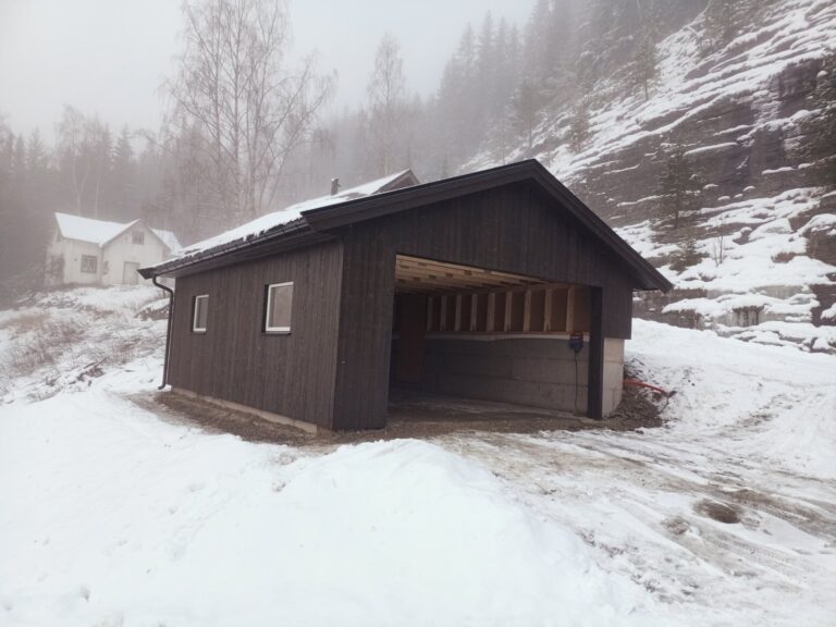 Ny Enebolig med moderne preg på Raufoss. Kvadratisk form i atkitekttegnet stil. Bygget av Stenumgård Bygg på Fåvang.